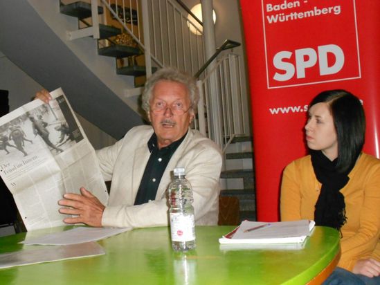 Unter dem Titel „Hilfe, da steht ein Panzer in meinem Garten“ veranstaltete der SPD Ortsverein Denzlingen und die Jusos aus dem Landkreis Emmendingen mit dem Historiker und Mitbegründer der historischen Friedensforschung Wolfram Wette einen Diskussionsabend in Denzlingen. Der Anlass war die jüngste Entscheidung des Bundesverfassungsgerichts nach der der Einsatz der Bundeswehr innerhalb Deutschlands nun auch mit militärischen Mitteln möglich ist.